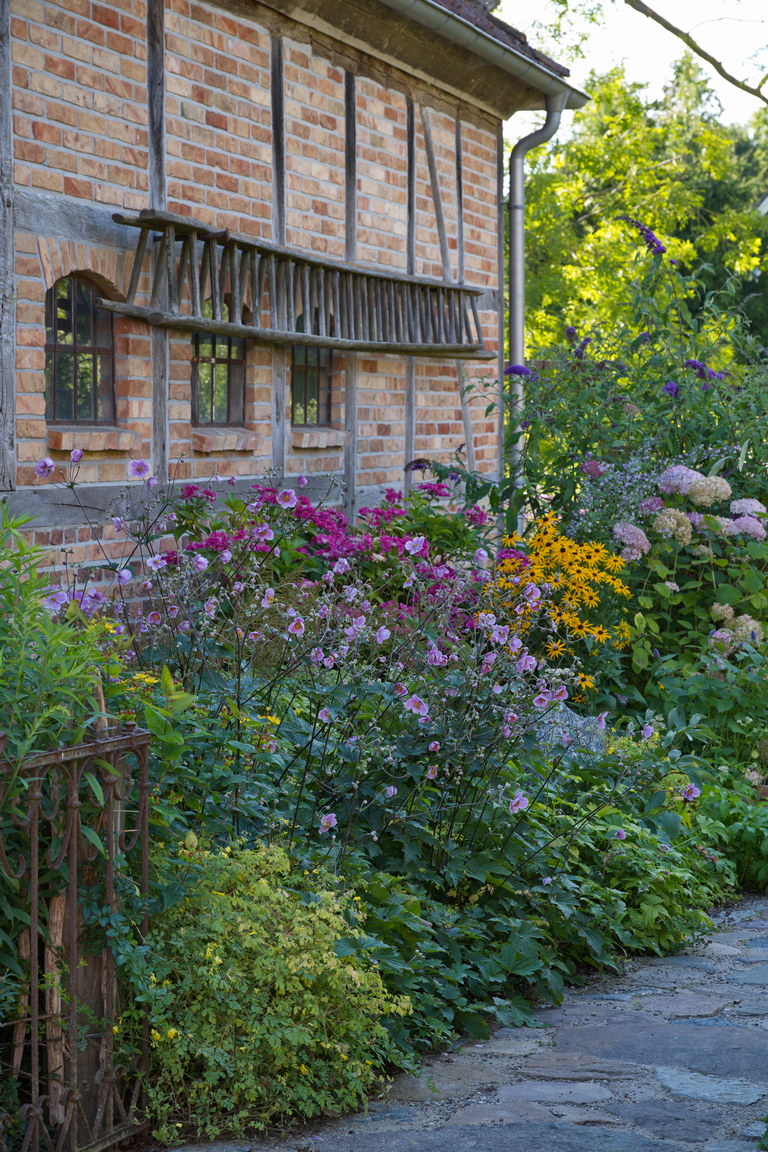 - Bauerngarten, Budleja, Herbst-Anemone, Hortensie, Hydrangea arborescens, Hydrangea macrophylla, Rudbeckia, Thalictrum, Tor, antik