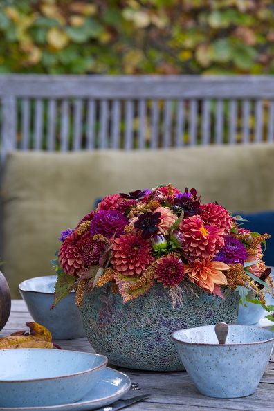 - Carex, Eucalyptus, Gräser, Hagebutten, Herbst, Kranz, Kübel, Stipa tenuissima, Terrasse, Zink