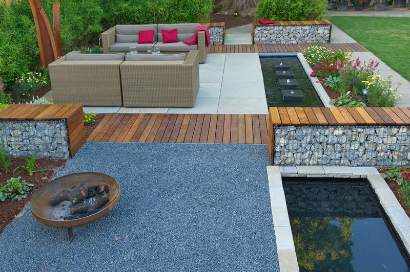Gabionen, Teich, Terrasse, Wasser, formal, modern, Garten Zinsser