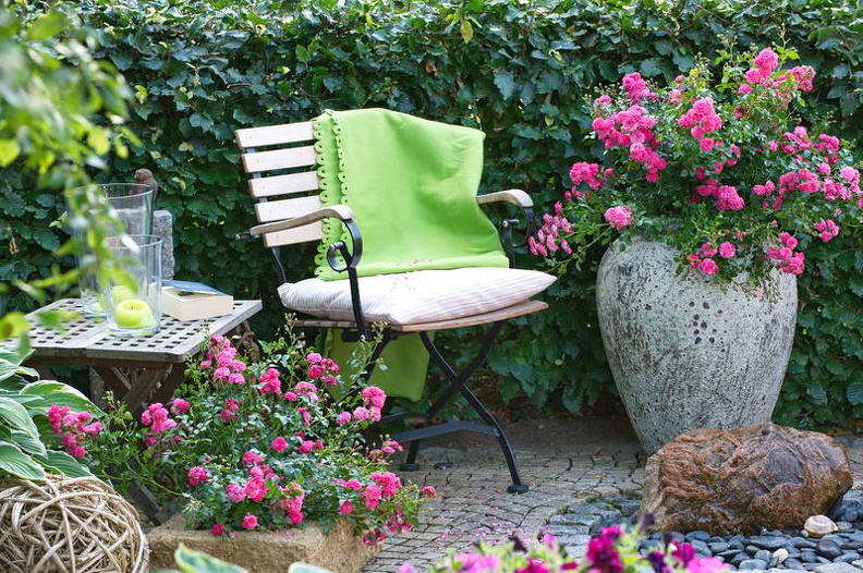 - Garten Annette Timmermann, Kübel, Sitzplatz, Terrasse
