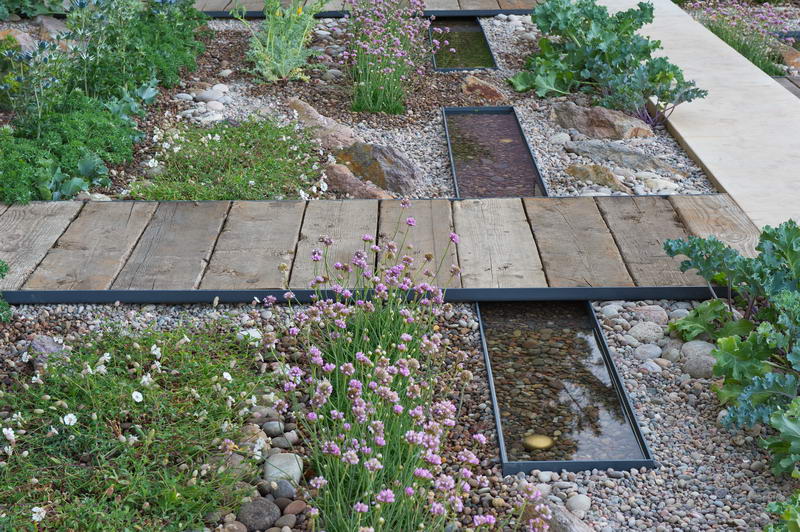 - Kies, modern, Rinne, Steg, Wasserbecken, Chelsea Flower Show 2011