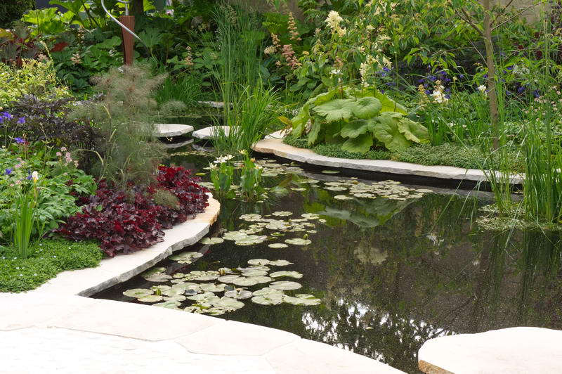 - Chelsea Flower Show 2011, Hydrocharis morsus-ranae, Kiesel, Pflaster, Teich