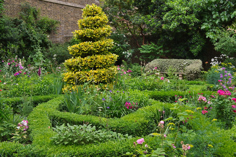 - Buchs, Gehölz, Ilex 'Golden King', Spirale, Stechpalme