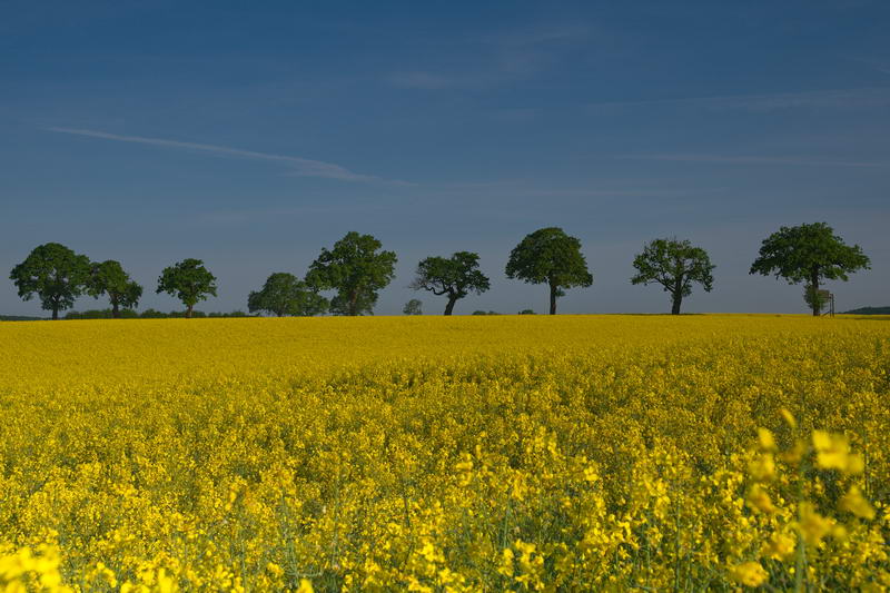 Baumreihe im Rapsfeld bei Schwiddeldei/Ascheberg