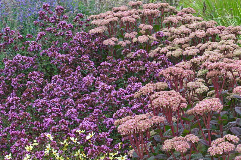 Sedum "Matrona", Origanum laevigatum 'Rosenkuppel'
