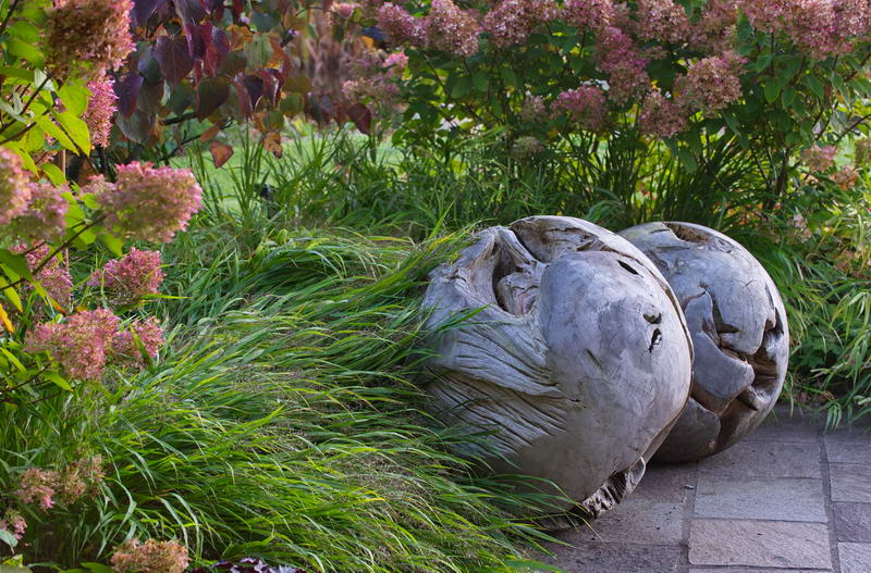 - Andrea Küster, Grüne Kugel, Holzkugel, Hortensie, Skulptur
