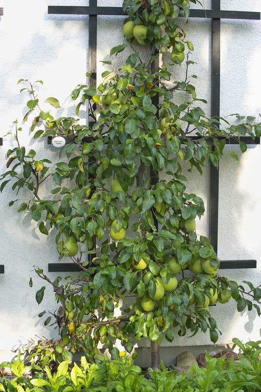 - Birne "Alexander Lucas", Hauswand, Spalierobst, Garten Schnewitz