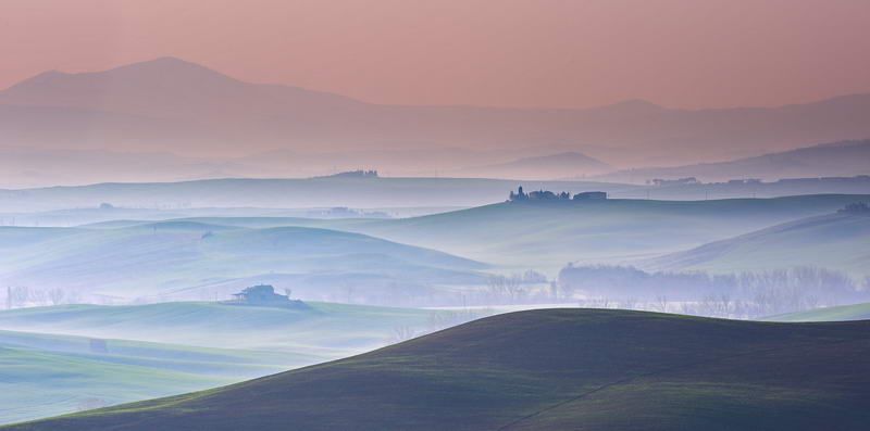 Nebel, Hügellandschaft, Toskana, Val D'Orcia