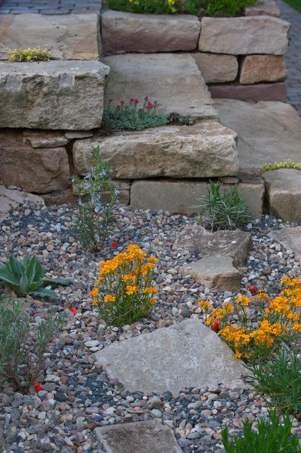 - Kiesbeet, Steingarten, Trockenmauer, Garten Heinatz