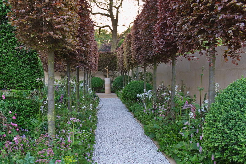 - Artemisia absinthium 'Lambrook Silver', Centranthus lecoqii, Chelsea Flower Show 2012, Delphinium requenii, Dianthus, Skulptur, Stachys, Weg