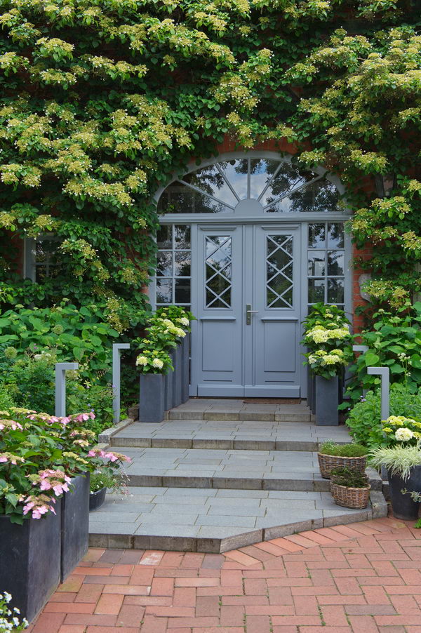 - Eingang, Hydrangea petiolaris, Tür, Vorgarten