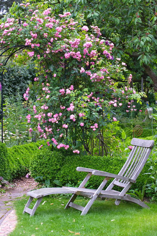 - Kletterrose, Liegestuhl, Paradies Gartengalerie, Rose 'Raubritter'