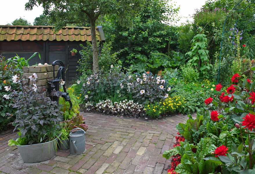 - Bauerngarten, Gemüsegarten, Schwengelpumpe