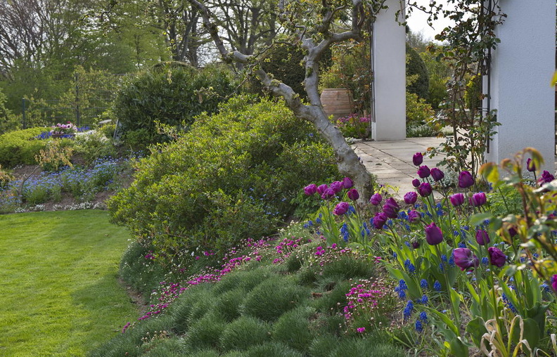 Bank, Akelei, Allium, Hecke, Hainbuche, Staudengärtnerei