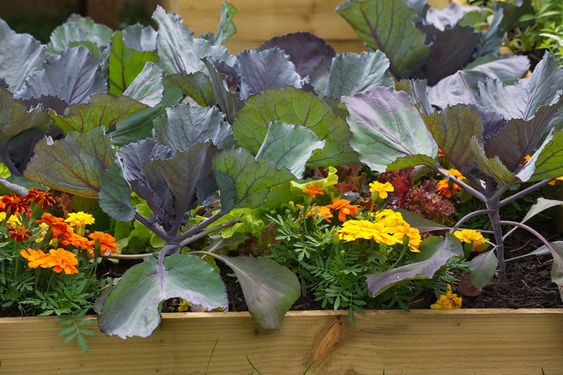 Hochbeet, Kohl, Tagetes, Gemüse