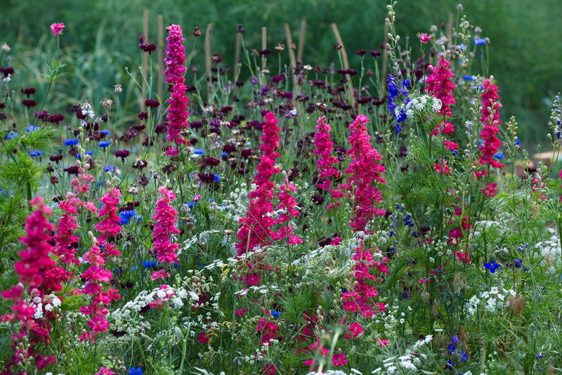 - Ammi majus, Centaurea cyanus "Black Ball", Consolida "Dark Blue", Consolida "King Size Scarlet", Feldrittersporn, 1-jährige, Hidcote Manor Garden