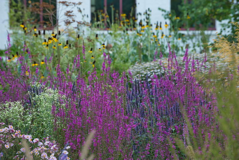 - Lythrum virgatum "Dropmore Purple", Ruten-Weiderich, Anemone hupehensis "Ouvertüre", Herbst-Anemone