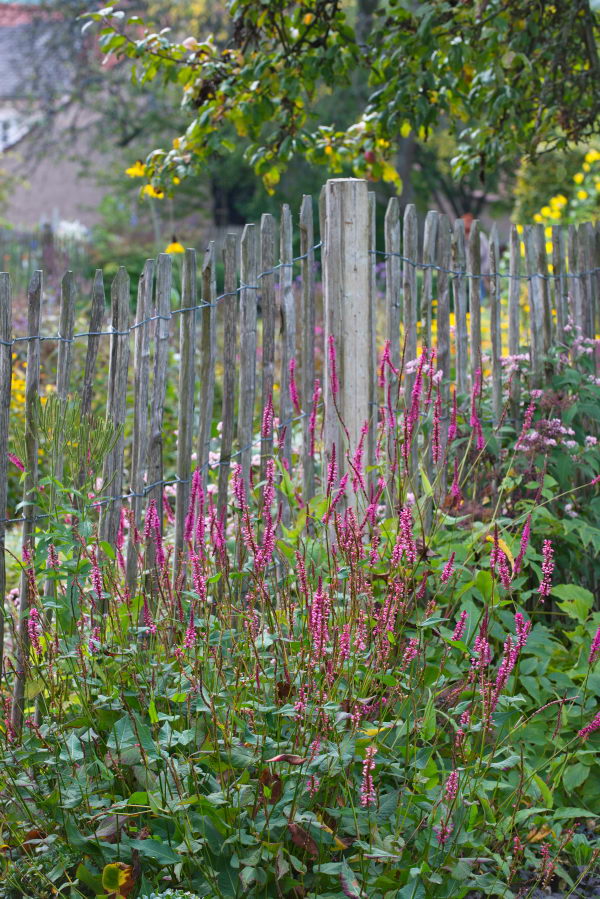 - Bistorta amplexicaulis 'Early Pink Lady', Bistorta amplexicaulis 'September Spires', Die Staudengärtnerei, Staketenzaun