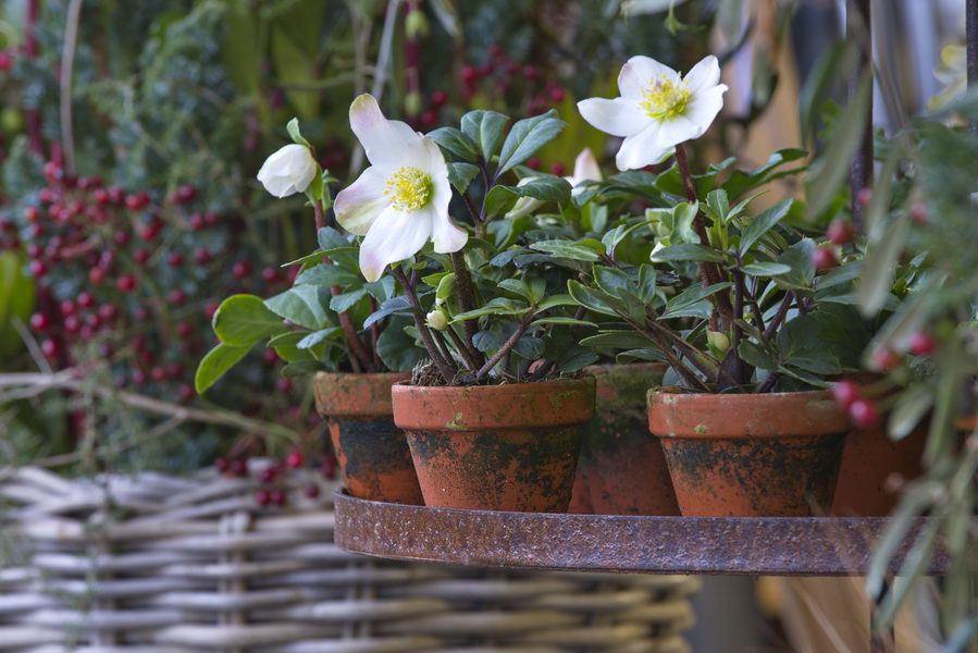 - Advent, Deko, Helleborus, Tontopf