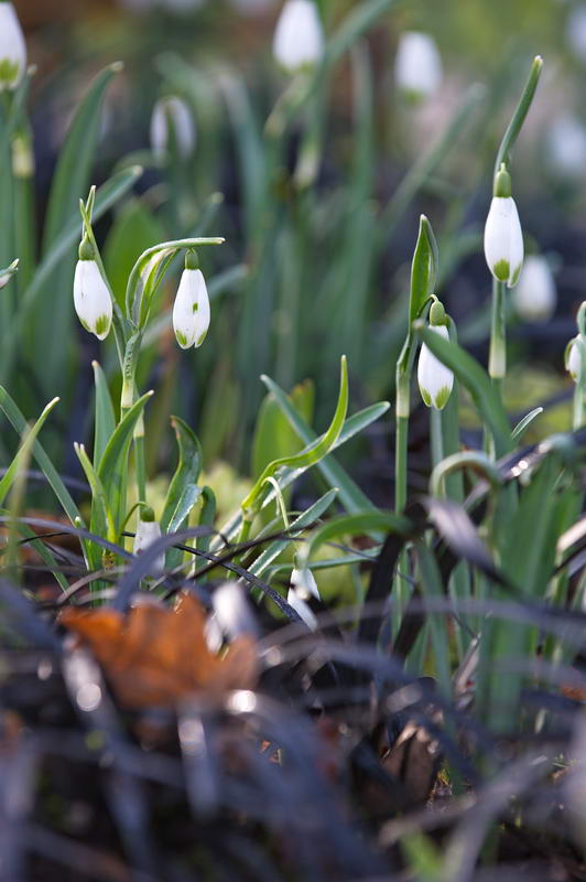 - Galanthus 'Viridapice', Ophiopogon planiscapus 'Niger', Schneeglöckchen, schwarzer Schlangenbart
